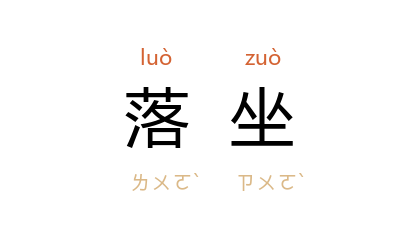 引老舍 《四世同堂》四九:“四爷看大家都坐下,自己也落坐。”周立波 《山那面人家》:“我们才落坐,她们都一哄出去了,门外是一路的笑声。”