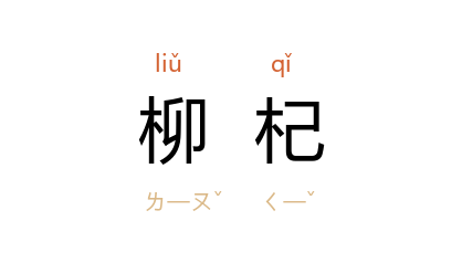 ⒈ 泛指柳树。杞,柳的一种,也叫红皮柳。