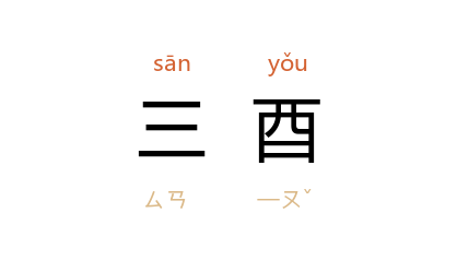 引明 田艺蘅 《留青日札·酒名》:“今人称酒曰三酉,皆言三点水加酉也。”周作人 《谈酒》:“我既是酒乡的一个土著,又这样喜欢谈酒,好象一定是个与‘三酉’结不解缘的酒徒了。其实,却大不然。”