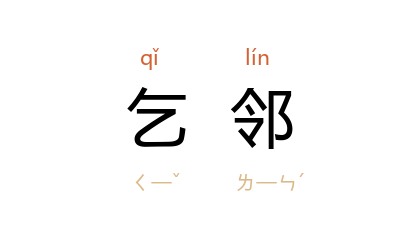 引《论语·公冶长》:「孰谓微生高直?或乞醯焉,乞诸其邻而与之。」明·李东阳〈题王维诗意图〉诗:「村烟多乞邻,馌饷常及午。」