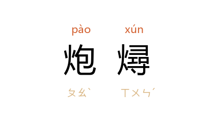 ⒈ 烧炙。语出宋罗泌《路史·禅通纪·炎帝》:“﹝炎帝神农氏﹞修火之利,以炮以燖。”