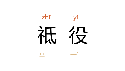 引南朝宋·谢灵运〈邻里相送至方山〉诗:「祗役出皇邑,相期憩瓯越。」唐·李逢吉〈望京楼上寄令狐华州)诗:「祗役滞南服,颓思属暮年。」