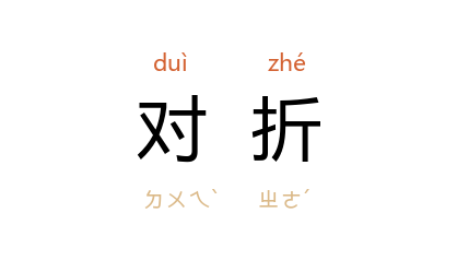 例如:「这家书店周年庆,书籍对折大廉价,价钱便宜一半呢!」