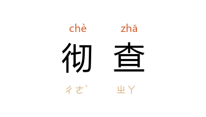 如:「他因贪污索贿,法院决定要彻查他所有的财产。」