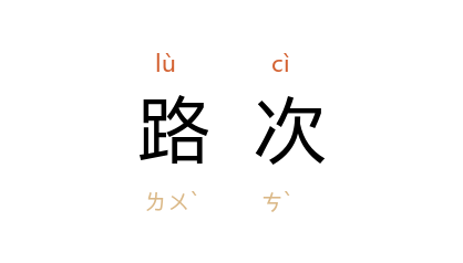 引《三国志·卷四八·吴书·三嗣主传·孙皓传》:「至于今者,猥烦六军,衡盖路次,远临江渚,举国震惶,假息漏刻。」《晋书·卷八·哀帝纪》:「戎旅路次,未得轻简赋役。」