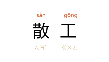 ⒈ 工地、工厂于每日工作结束后,让员工解散休息,称为「散工」。