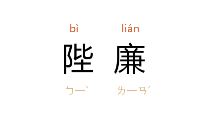 ⒈ 语本《汉书·贾谊传》:“人主之尊譬如堂,群臣如陛,众庶如地。故陛九级上,廉远地,则堂高;陛亡级,廉近地,则堂卑。”后因以“陛廉”指朝廷。