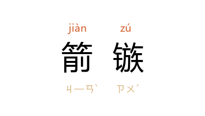 引《后汉书·西域传西夜》:“﹝ 西夜国 ﹞地生白草,有毒,国人煎以为药,傅箭鏃,所中即死。”唐 王建 《射虎行》:“远立不敢污箭鏃,闻死还来分虎肉。”清 吴伟业 《临江参军》诗:“日暮箭鏃尽,左右刀鋋集。”