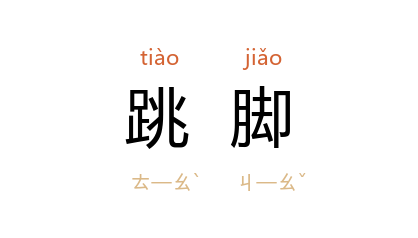 引茅盾 《路》四:“华 捏起拳头,跳脚咆哮。”丁玲 《生活、思想与人物》:“尽管不是一个很突出的地主,一跳脚几条河几座山都发抖的人,就能镇压住一个村子。”李劼人 《天魔舞》第五章:“他也不会急得在 昆明 巫家坝 飞机场跳脚。”