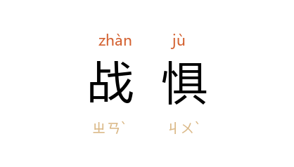 引《后汉书·酷吏传·黄昌》:“后拜 宛 令,政尚严猛,好发姦伏……悉收其家,一时杀戮。大姓战惧,皆称神明。”唐 吴兢 《贞观政要·求谏》:“若即嗔责,深恐人怀战惧,岂肯更言!”清 蒲松龄 《聊斋志异·冤狱》:“其人大言曰:‘我 关帝 前 周将军 也!昏官若动,即便诛却!’令战惧悚听。”