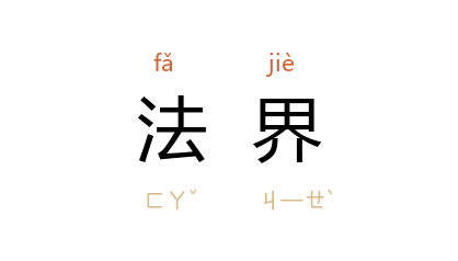 ⒈ 佛教用语:(1) 构成现象的法则。和空性、真如、实际同义。(2) 十八界之一,佛教将一切存在分成十八类,法界为其中一类。谓属于心智所觉察的对象。