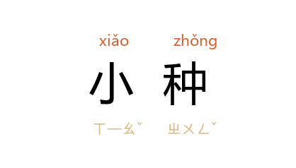引《汉书·赵充国传》:“於是诸降 羌 及 归义羌侯 杨玉 等恐怒,亡所信乡,遂劫略小种,背畔犯塞,攻城邑,杀长吏。”《三国志·魏志·乌丸鲜卑东夷传》:“軻比能 本小种 鲜卑,以勇健,断法平当,不贪财物,众推以为大人。”