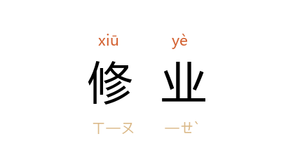 ⒈ 业,古人读书写字的版。本指研读书籍,引申为修营功业。现指(学生)在校学习或研究学术。