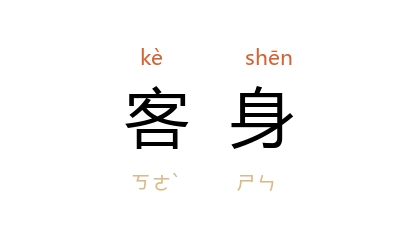引唐 杜甫 《春日江村》诗之二:“迢递来三 蜀,蹉跎有六年。客身逢故旧,发兴自林泉。”宋 戴复古 《久寓泉南待一故人消息》诗之二:“寄迹小园中,岂不胜旅舍?俗事无交加,客身自闲暇。”元 金仁杰 《追韩信》第三折:“若不是朝中宰相自劳神,把飘零客身,引入贤门。”