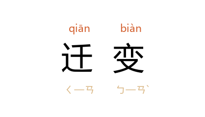 引《晋书·礼志下》:“周 末崩离,宾射宴饗之则罕復能行,冠婚饮食之法又多迁变。”宋 苏舜钦 《升阳殿故址》诗:“农惟喜丰稔,吾独閔迁变。”清 曾国藩 《<经史百家简编>序》:“末流之迁变,何可胜道!”鲁迅 《坟·我之节烈观》:“不过时代不同,则所谓‘日下’的事情,也有迁变:从前指的是甲事,现在叹的或是乙事。”