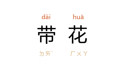 引叶紫 《流亡》三:“我的手便是在那个时候带花的。”陈毅 《记淮海前线见闻》诗:“担架队,几夜不曾睡,稳步轻行问伤病:同志带花最高贵,疼痛可减退。”