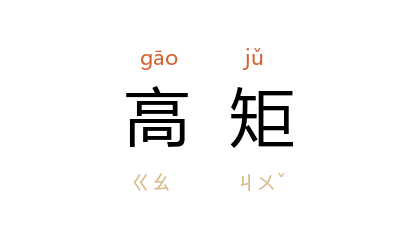 引《文选·张华<励志诗>》:“先民有作,貽我高矩。”吕延济 注:“言先圣作法度,遗我为高大之规矩。”《晋书·贺循传》:“餐服玄风,景羡高矩。”唐 司空图 《故盐州防御使王纵追述碑》:“曾祖某,誉合贵游,跡追高矩。”