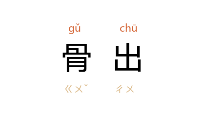 引《乐府诗集·清商曲辞三·读曲歌三五》:“飞龙落药店,骨出只为汝。”唐 李贺 《恼公》诗:“心摇如舞鹤,骨出似飞龙。”鲁迅 《且介亭杂文末编·<凯绥·珂勒惠支版画选集>序目》:“桌上的烛火尚有馀光,‘死’却已经近来,伸开他骨出的手,抱住了弱小的孩子。”
