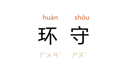 引唐 段成式 《酉阳杂俎续集·支诺皋中》:“其家有病者,将困,迎僧持念,妻儿环守之。”宋 洪迈 《夷坚甲志·高俊入冥》:“左右破脑者,折脛者、折肱者、穴胸者,百十人环守之。”《辽史·太宗纪下》:“夜则列骑环守,昼则出兵抄掠。”