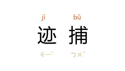 引《宋史·卷三三三·单煦传》:「民以妖幻转相教授,煦迹捕戮三十余人。」宋·洪迈《夷坚丙志·卷四·阆州通判子》:「时同郡数家被盗,所失财物甚众,立赏迹捕,莫能得。」