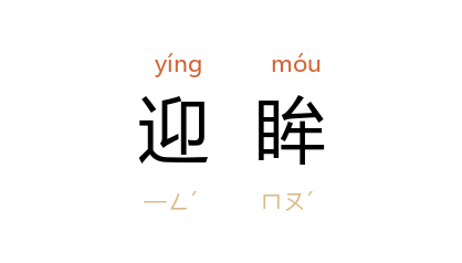 引《水浒传》第十九回:“迎眸翠色,千枝荷叶绕芳塘。”《醒世恒言·苏小妹三难新郎》:“‘天巧玲瓏玉一邱,迎眸烂熳总清幽。白云疑向枝间出,明月应从此处留。’ 小妹 览毕,知是咏绣毬花所作。”