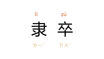 引清 袁枚 《续新齐谐·阴阳山》:“忽见一隶卒执牌来呼曰:‘且带三十六人去。’”《镜花缘》第十一回:“説话间,来到闹市,只见一隶卒在那里买物。”