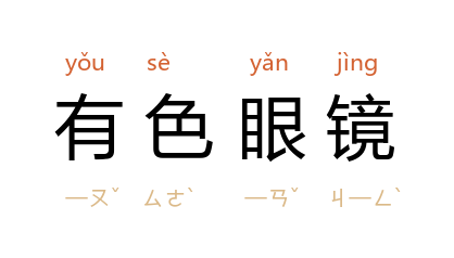 例如:「透过有色眼镜看事物,往往得不到事物的真相。」