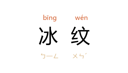引唐 李益 《写情》诗:“冰纹珍簟思悠悠,千里佳期一夕休,从此无心爱良夜,任他明月下西楼。”唐 常衮 《晚秋集贤院即事》诗:“墨润冰文茧,香销蠹字鱼。”清 姚衡 《寒秀草堂笔记·宾退杂识一》:“端州 石以 水巖 大西洞 为上,冰纹尤为 大西洞 之最。”清 龚自珍 《水龙吟·题家绣山停琴听箫图》词:“有相思两字,呼之欲出,秋意裂,冰纹断。”