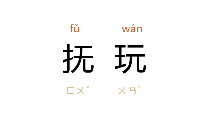 例如:「他抚玩著一个骨董花瓶,爱不忍释。」