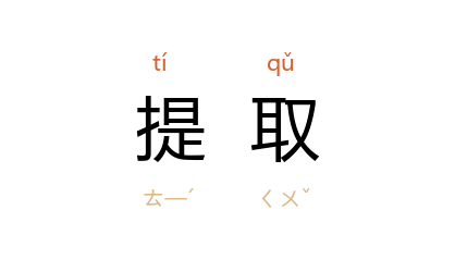 ⒈ 通过溶剂(如乙醇)处理、蒸馏、脱水、经受压力或离心力作用,或通过其他化学或机械工艺过程从物质中制取(如组成成分或汁液)
