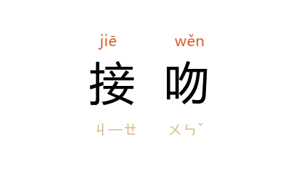 引清 黄钧宰 《金壶逸墨·洞元镜》:“西人谓 殴洲 诸国男女,不避嫌疑,亲属相逢,则握手接吻以为礼。”巴金 《家》二六:“她觉得他的接吻还在她的唇上燃烧。”
