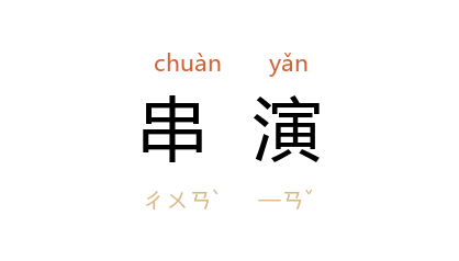 引瞿秋白 《曲的解放》:“他那里无心串演,我这里有口难分,一出好戏,就此糟糕,好不麻烦人也。”沙汀 《记贺龙》三四:“他最赏识那个串演主角的女同志。”许杰 《一个人的独白》:“这种悲剧……﹝我﹞却真的串演了一回了。”