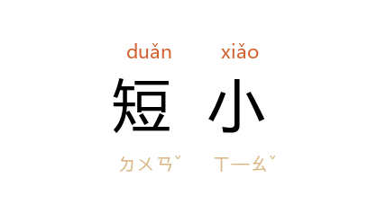 ⒉ 形容文章、戏剧等不长,泛指事物短而小。