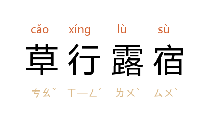 ⒈ 在草野中赶路,露天歇宿。形容行旅的艰辛或迫促。