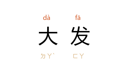 例如:「他中了统一发票头奖,在一夜之间大发了。」
