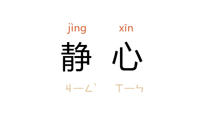 引《庄子·达生》:“臣将为鐻,未尝敢以耗气也,必齐以静心。”唐 欧阳詹 《泉州六曹新都堂记》:“足以寧肌静心,釐厥职者也。”《清史稿·颖毅亲王萨哈璘传》:“尔其静心调摄,以副朕望!”叶紫 《夜哨线》四:“他将眼睛牢牢地闭着,他想静心地能想出一个好的办法来。”