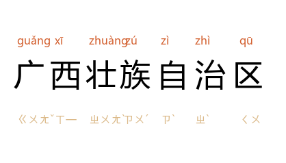 ⒈ 别称“桂”。在中国南部,临北部湾。面积23.67万平方千米。人口4502.11万(1995年)。壮族占总人口的三分之一。清代为广西省。1958年建立广西僮族自治区,1965年改广西壮族自治区。首府南宁,山地、丘陵广布,平地多分布在沿江。喀斯特地貌普遍发育。河流属西江水系。亚热带湿润区。甘蔗和蔗糖产量居全国首位。红水河建有梯级电站。锡、铝储量丰富。近海大陆架有石油。