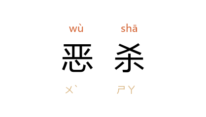 引《魏书·崔亮传》:“灵太后 令曰:‘ 亮 为臣不忠,去留自擅……但吾摄御万几,庶兹恶杀,可特听以功补过。’”南朝 陈 徐陵 《报尹义尚书》:“圣朝好生恶杀,收雷寝电。”明 宋濂 《西域军中获角端颂》:“是兽名角端,能日行万八千里,其见则恶杀之象,殆天使之告陛下耶?”