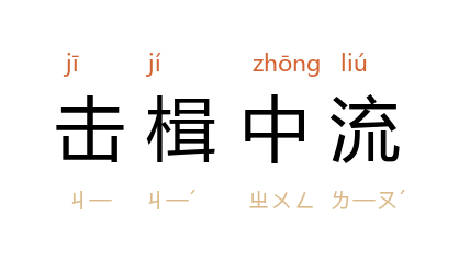 ⒈ 晋 祖逖 帅师北伐,渡 江 于中流,敲击船桨立下誓言:不清中原不罢休。见《晋书·祖逖传》。后因以“击楫中流”称颂收复失地报效国家的激烈壮怀和慷慨志节。参见“中流击楫”。