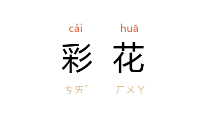 ⒈ 彩绢制作的花。 宋 高承 《事物纪原·岁时风俗·綵花》:“《实録》曰:‘ 晋惠帝 令宫人插五色通草花。’…… 晋 《新野君传》:‘家以翦花为业,染绢为芙蓉,捻蜡为菱藕,翦梅若生’……按此则是花朵起於 汉,翦綵起於 晋 矣。