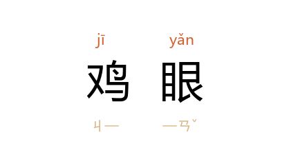 ⒈ 因角质层增生形成的小圆硬块,样子像鸡的眼睛,故称为「鸡眼」。常出现于足趾及足底前端,多因穿著过紧的鞋子或足骨原来就有畸形,使足部皮肤长期受刺激而引起,常因疼痛而影响行走。