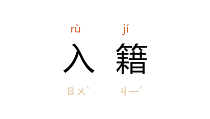⒈ 甲国或甲地人,改入乙国或乙地的户籍,皆称为「入籍」。