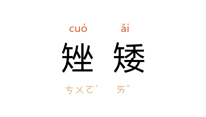 引元 白朴 《梧桐雨》楔子:“这人又矬矮,又会舞旋,留着他解闷倒好。”明 冯梦龙 《智囊补·术智·乔白岩》:“是时边军每于市横行,强买货物。 寇公 亦选矬矮精悍之人,每早晚祇候行宫,必以自随,若遇此辈,即与相持。边军大为所挫,遂敛迹。”
