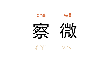 引《史记·五帝本纪》:“聪以知远,明以察微。”宋 陈郁 《话腴》:“钟会 欲询以时事而致之罪,而 籍 终皆以沉湎避。其察微见远,寄託保身,非高出数子之上,其能脱屣於祸穽哉!”《人民文学》1979年第1期:“赵克谦 察微知著,就在青萍之末刚有风意的时候,他已经未雨绸缪了。”