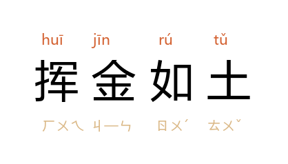 ⒈ 挥霍钱财像泥土一样。形容人花钱慷慨或挥霍无度。