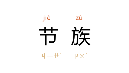 引《荀子·非相》:“文久而息,节族久而絶。”杨倞 注:“节奏久则废也。”《汉书·严安传》:“调五声使有节族,杂五色使有文章。”颜师古 注:“苏林 曰:‘族音奏。’节,止也;奏,进也。”章炳麟 《四惑论》:“百昌之在恒沙世界,节族自然,盘旋起舞,合於度曲。”