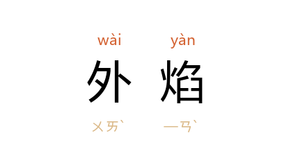 ⒈ 火焰的外层。无色。因供氧充足,燃烧完全,温度最高。具有氧化作用。