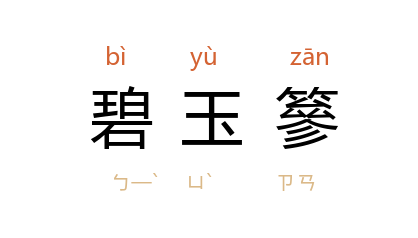 引唐 韩愈 《送桂州严大夫》诗:“江作青罗带,山如碧玉篸。”前蜀 薛昭蕴 《女冠子》词:“髻綰青丝髮,冠抽碧玉篸。”宋 张孝祥 《水调歌头·桂林集句》词:“江山好,青罗带,碧玉簪。”姚锡钧 《消息词》之二:“当帘奩镜春风细,凉上儿家碧玉篸。”