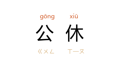 ⒈ 商店经同业公会决定,以每月某日为公休日,是日停业休息,称为「公休」。
