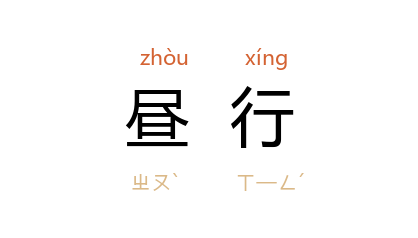 ⒈ 古人以在本乡或旧地做官为衣锦昼行。昼行,谓白日行游,炫耀于人。白天行走或行路。